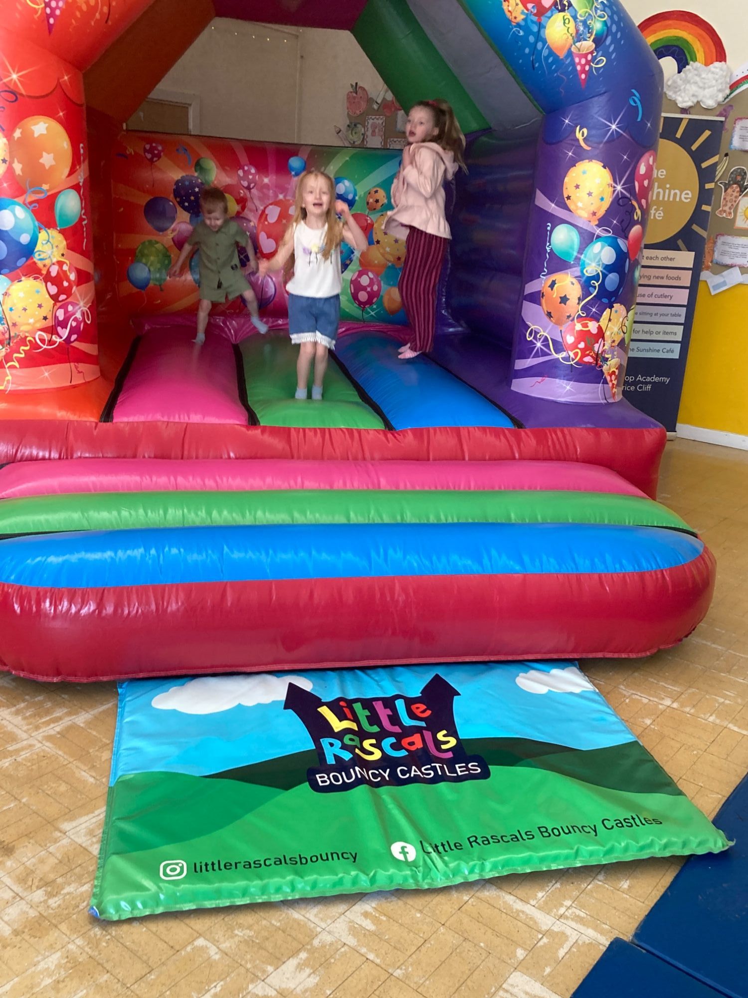 Jumping on the Little Rascals Bouncy Castles (they were huge!).