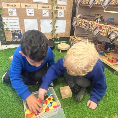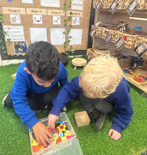 Our nursery welcomes children aged 3 - 4 and helps them get ready for school in a happy and caring way. As part of a nursery school, children learn routines, build independence and feel confident in a classroom setting. Our highly qualified teachers use play and fun activities to help children make friends, enjoy learning and grow in confidence every day.